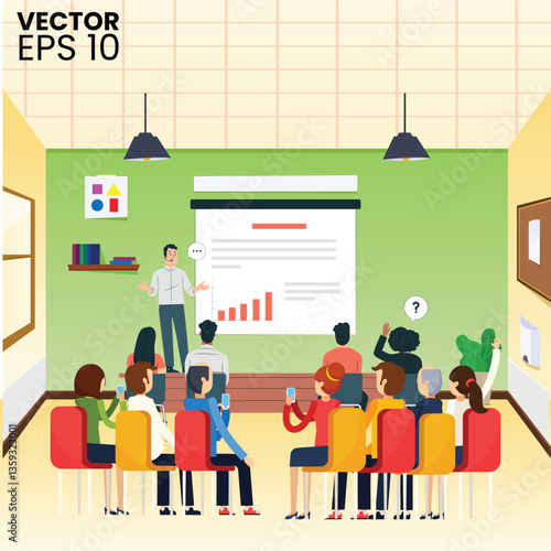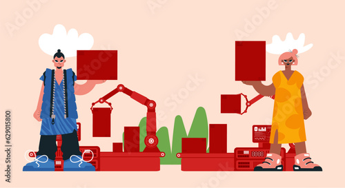 Векторная иллюстрация празднования Нового года в ресторане с Дедом Морозом и Снегурочкой. Люди с бокалами шампанского и бенгальскими огнями. Элемент дизайна концепции новогодней вечеринки, плоский стиль