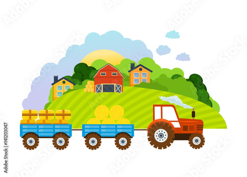 Векторная иллюстрация красной пожарной машины в плоском стиле. Транспортное средство, перевозящее пожарных и оборудование для тушения пожаров. Пожарная машина и пожарные в униформе.