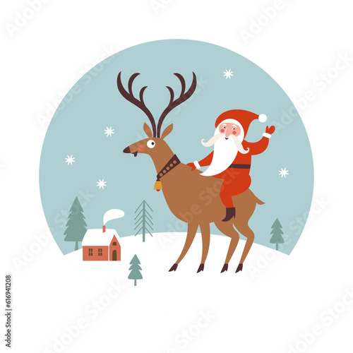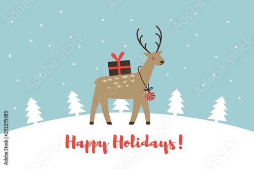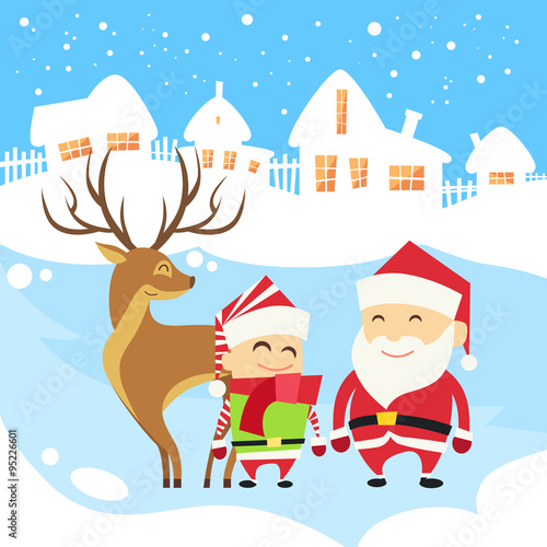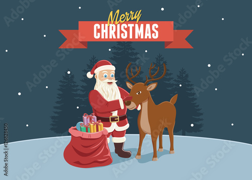 Векторная иллюстрация северного пейзажа с эскимосским мужчиной и северным оленем. Элемент дизайна концепции оленевода в плоском стиле.