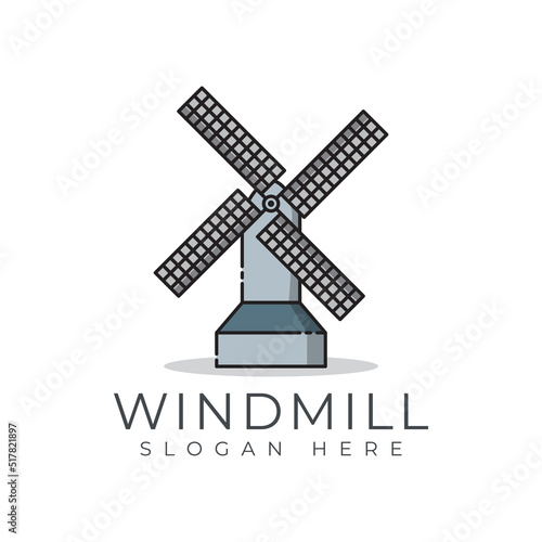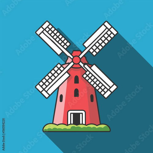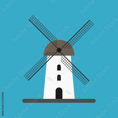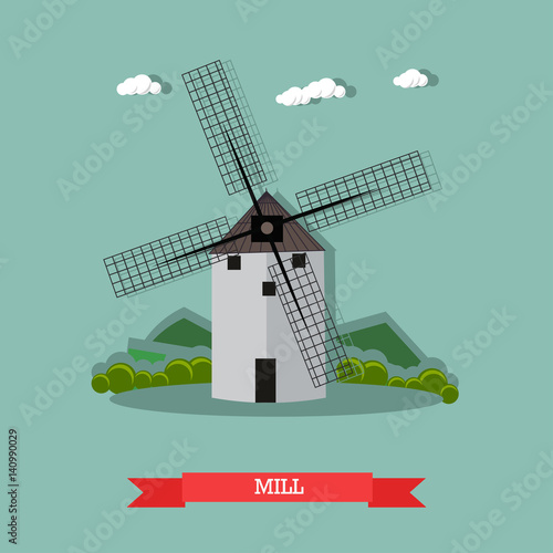 Векторная иллюстрация ретро-ветряной мельницы, используемой для измельчения кукурузы в муку. Элемент дизайна концепции фермерства в плоском стиле.