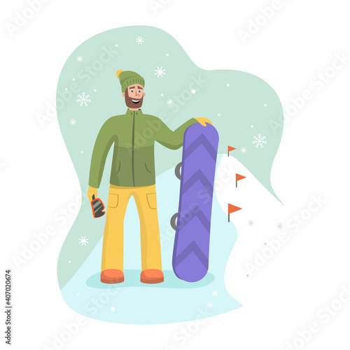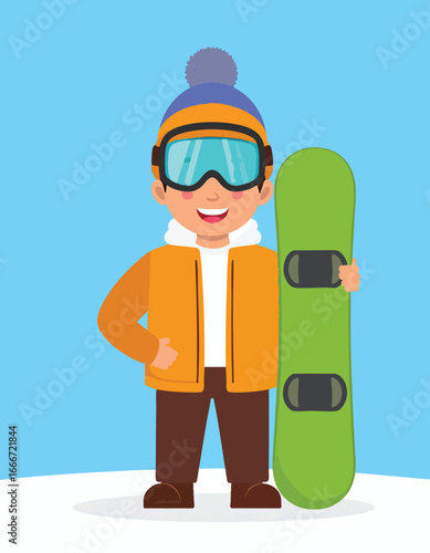 Векторная иллюстрация мальчиков со сноубордами. Сноубордисты, мультяшные персонажи. Элемент дизайна концепции зимних видов спорта и отдыха в плоском стиле.
