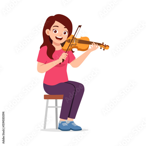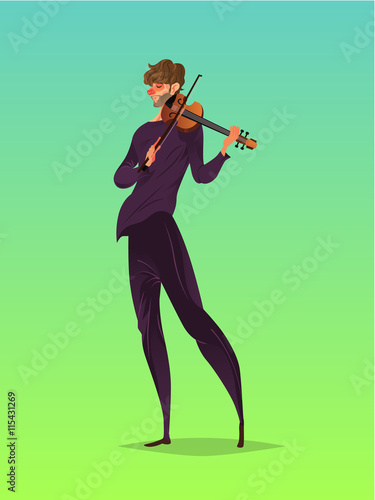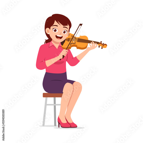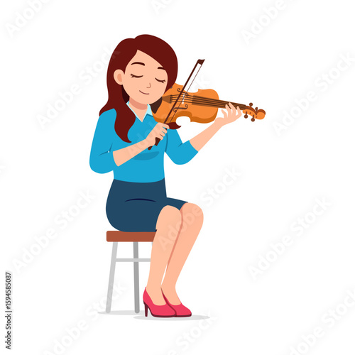 Векторная иллюстрация молодой девушки-музыканта, играющей на скрипке на улице. Элемент дизайна в плоском стиле уличного музыканта.