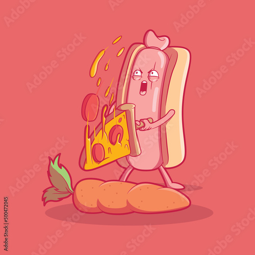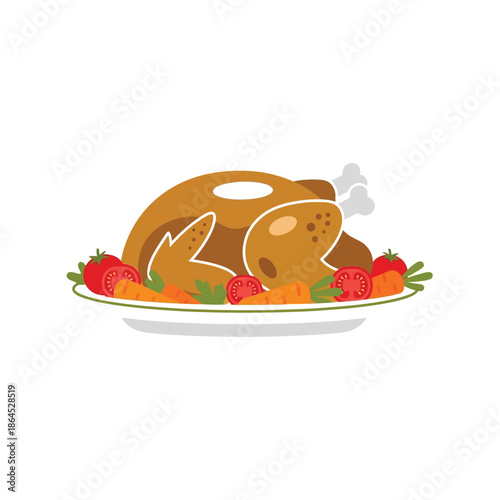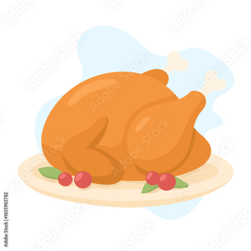 Векторная иллюстрация женщины, держащей поднос с жареной индейкой на день благодарения в стиле комиксов ретро-поп-арта. Речевой пузырь.