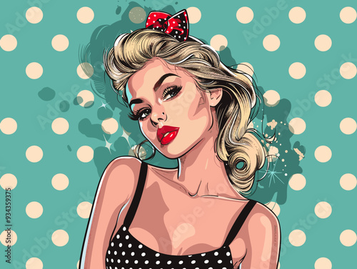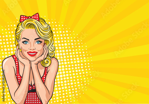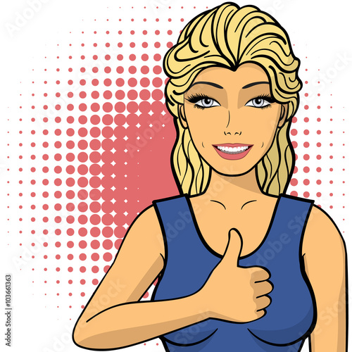 Векторная иллюстрация молодой женщины, демонстрирующей мышцы в стиле комиксов ретро-поп-арта. Довольно сильная девушка со спортивной фигурой.