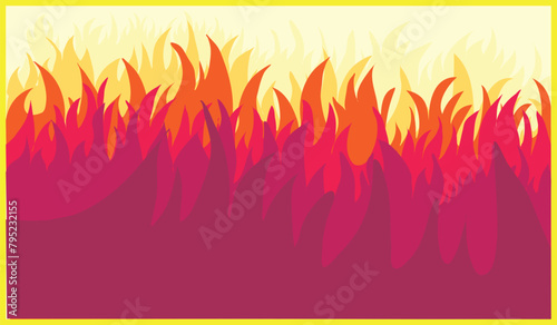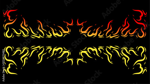 Векторная иллюстрация с набором горящих языков пламени на черном фоне.