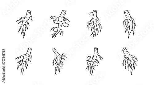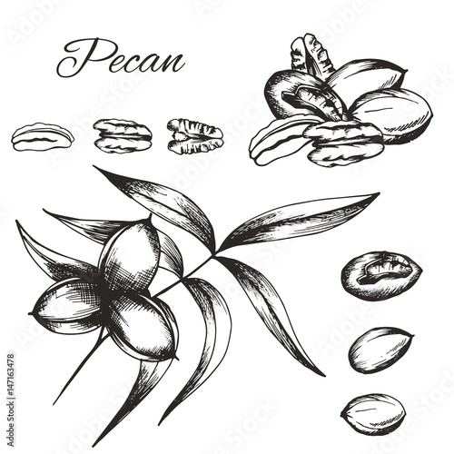 Набор кулинарных трав и специй, нарисованный векторными чернилами от руки. Ваниль, черный перец горошком, розмарин, мускатный орех, гвоздика эскиз иллюстрации для рецепта и печати.