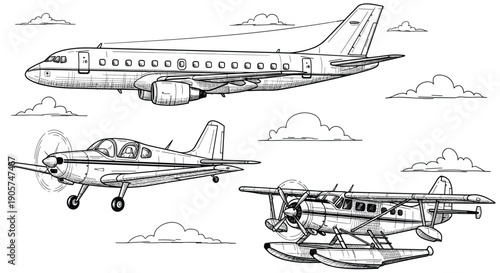 Набор охотничьего снаряжения. Векторная иллюстрация, нарисованная от руки чернилами, изолированная на белом фоне.