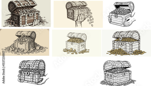 Векторный набор меда, нарисованный вручную чернилами. Соты с медом, улей, пчела, деревянная палочка, цветок, банка с медом. Иллюстрация винтажного эскиза сладкого натурального органического меда.