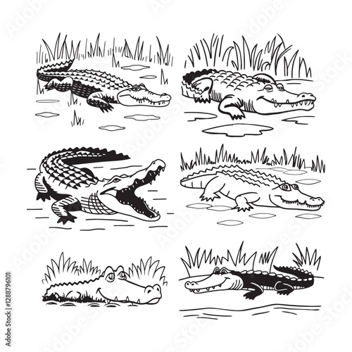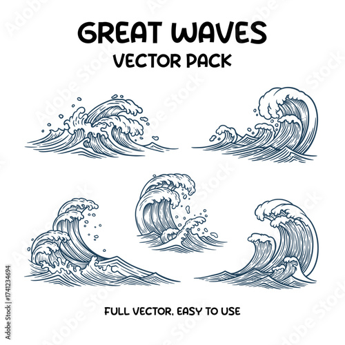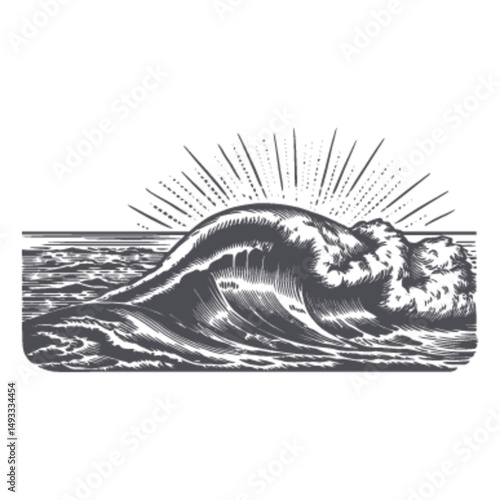 Заходят волны. Векторная иллюстрация, нарисованная от руки чернилами, изолированная на белом фоне.