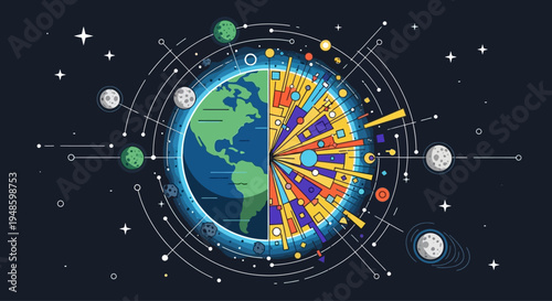 Векторная многослойная диаграмма магнитного или геомагнитного поля Земли в стиле вырезки из бумаги. Шаблон образовательного плаката. Планета Земля окружена магнитным полем, создаваемым вращением Земли вокруг своей оси.