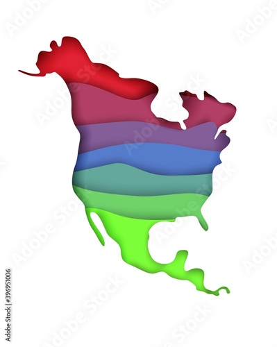 Векторная многослойная карта континента Северной Америки в стиле вырезки из бумаги. Туристический плакат, шаблон баннера.