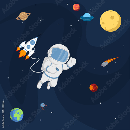 Векторный многослойный космический фон в стиле вырезки из бумаги для видеоигры galaxy. Космическое пространство и космические игровые предметы, такие как фантастические планеты, космический корабль, метеориты, астероиды.