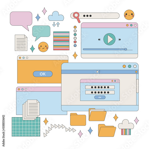 Набор шаблонов управления файлами и документами. Векторные современные тонкие линии искусства плоский стиль элементы дизайна для баннеров веб - сайта и печатных материалов.