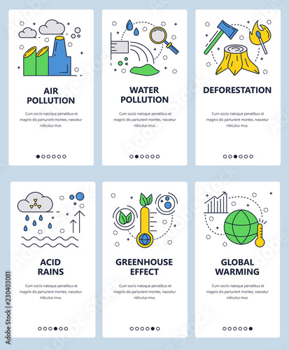 Векторный набор экранов для мобильных приложений. Энергия воды и биомассы, Мусорный бак, Аккумулятор, Развитие энергетики, Веб-шаблоны для очистки воды, баннеры. Тонкие линии искусства плоские иконки для меню веб-сайта.