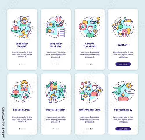 Векторный набор экранов для мобильных приложений. Деньги и расходы, Маршруты, Билеты, Пункт назначения, Отель, Советы, веб-шаблоны, баннеры. Тонкие линии искусства плоские иконки для меню веб-сайта.