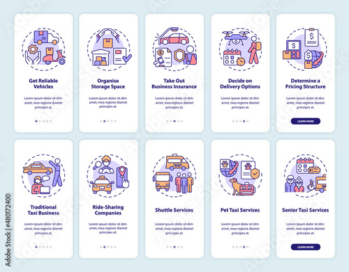 Векторный набор экранов для мобильных приложений. Учебные пособия, Книги, Аудиокниги, Инструменты, Навыки, Исследовательские веб-шаблоны и баннеры. Иконки дизайна в стиле тонкой линии для меню веб-сайта.