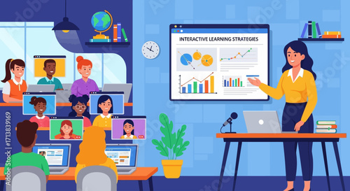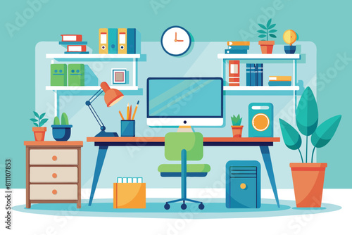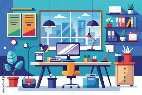 Векторный набор современных интерьеров рабочего пространства с офисной мебелью и оборудованием. Офисная жизнь деловых людей, иллюстрация в плоском стиле.