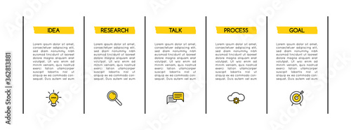 Векторный набор креативных концептуальных баннеров. Большая идея, Дизайнерские инструменты, Планирование, Маркетинговые исследования, Вдохновляющие веб-шаблоны. Современные элементы дизайна в стиле thin line art, иконки для меню сайта, печать.