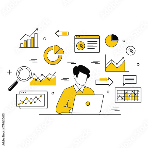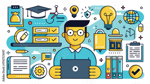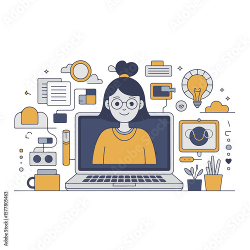 Векторная иллюстрация концепции коучинга. Современные тонкие линии плоских элементов дизайна, иконки для Интернета, маркетинга, презентаций и печати.