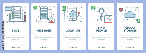 Векторный набор вертикальных баннеров с разработкой кода, анализом пользователей, защищенным резервным копированием, наукой о данных, концепцией облачных отчетов и веб-элементами. Современные тонкие линии плоских символов, иконки для меню сайта, печать.