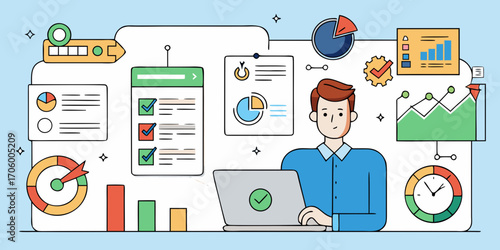 Векторная иллюстрация концепции запуска. Современные тонкие линии плоских элементов дизайна, иконки для Интернета, маркетинга, презентаций и печати.