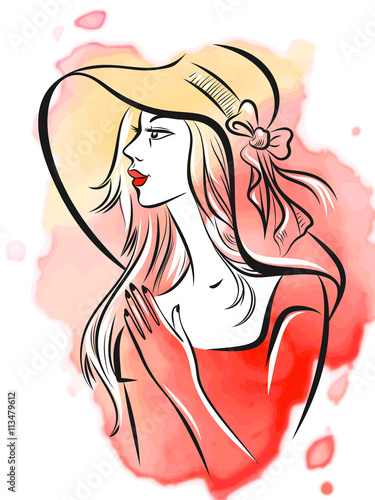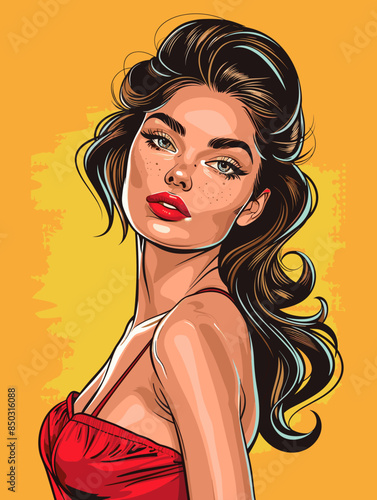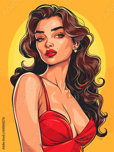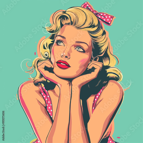 Вектор молодой красивой девушки, которая сложила руки под головой рядом с местом для текста. Молодая белая женщина кавказского происхождения с речевым пузырем в форме облака. Красивая девушка с длинными волосами