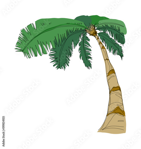 Векторная иллюстрация с изображением мультяшной пальмы и кокосовой пальмы. Два кокосовых растения в тропических джунглях, в саду или лесу, изолированные на белом фоне