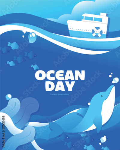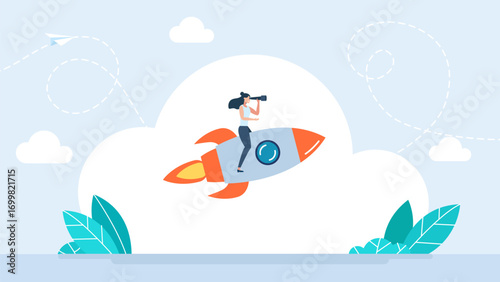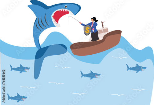Шаблон веб-сайта бизнес-целевой страницы. Векторная вырезанная из бумаги иллюстрация молодого бизнесмена с портфелем, остающегося на плаву и бороздящего волны перемен. Бросьте вызов бизнес-концепции.