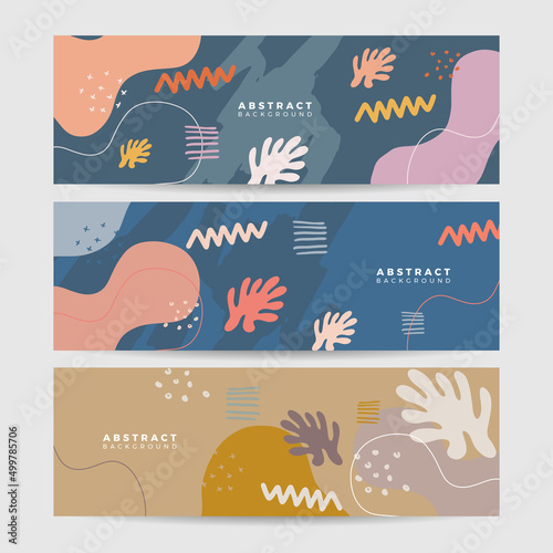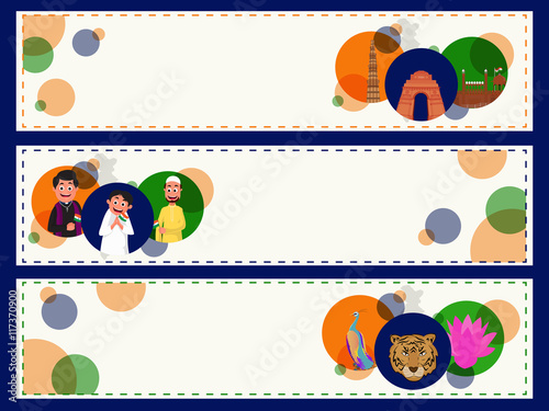 Векторный набор шаблонов цирковых веб-баннеров с вырезанной из бумаги цирковой ареной и исполнителями: воздушным акробатом, фокусником, дрессированным слоном, клоуном-жонглером, культуристом.