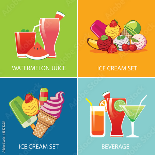 Набор карточек коктейльных летних напитков. Векторная иллюстрация, вырезанная из бумаги. Шаблоны дизайна плакатов с приглашением на тропическую вечеринку с красивыми экзотическими тропическими цветами, пальмовыми листьями и коктейлями.