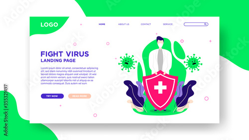Шаблон веб-сайта целевой страницы для травяного чая. Векторная вырезанная из бумаги керамическая чашка с пролитым ароматным зеленым чаем и цветами.