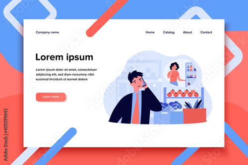 Шаблон веб-сайта домашней целевой страницы домашних животных. Вырезанная из векторной бумаги красная собачья будка с силуэтами сердца, собаки, кошки и попугая. Приют для животных, ветеринарная клиника. Люблю домашних животных.