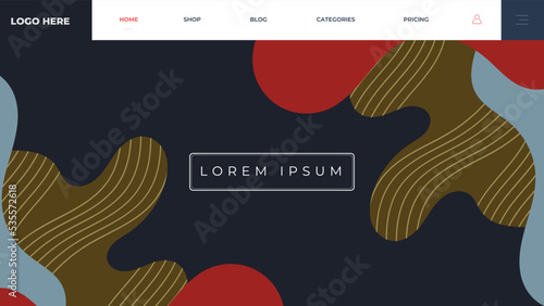 Шаблон веб-сайта целевой страницы магазина домашних животных. Векторный вырезанный из бумаги отпечаток красной лапы с силуэтами собаки, кошки и попугая. Интернет-магазин домашних животных. Приют для животных, услуги ветеринарной клиники.