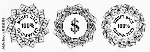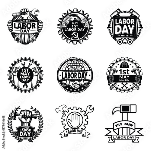 Векторный партийный набор эмблем, значков, наклеек или баннеров. Элементы дизайна в винтажном стиле. Черные иконки и логотип, выделенные на белом фоне.