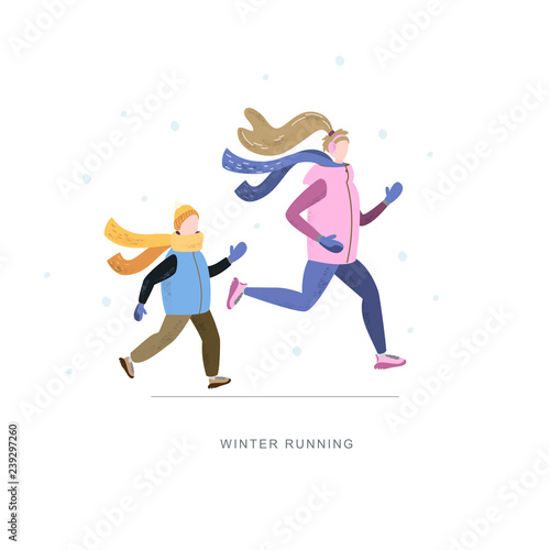 Векторная иллюстрация спортивной гонки "Спортсмен-бегун марафона". Группа молодых мужчин и женщин, занимающихся бегом трусцой, тренирующихся перед соревнованиями или пробежкой спринтерской дистанции