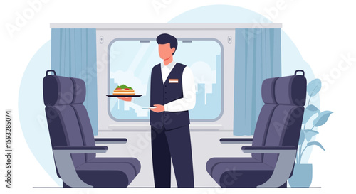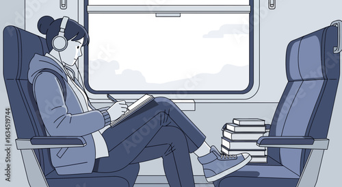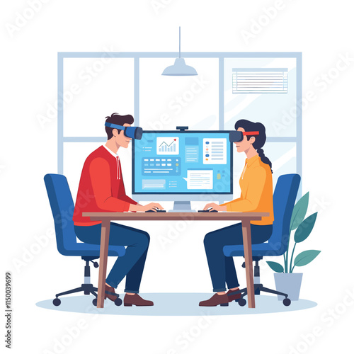Векторные люди-пассажиры, смотрящие фильм на экране телевизора во время полета. Концепция развлечений в полете. Внутри самолета, в салоне бизнес- или эконом-класса