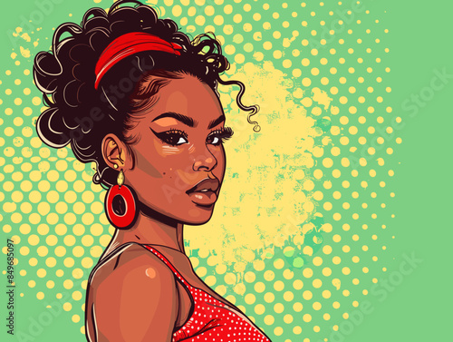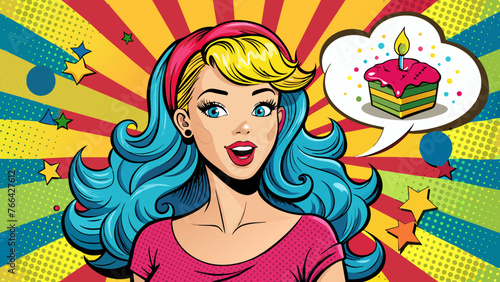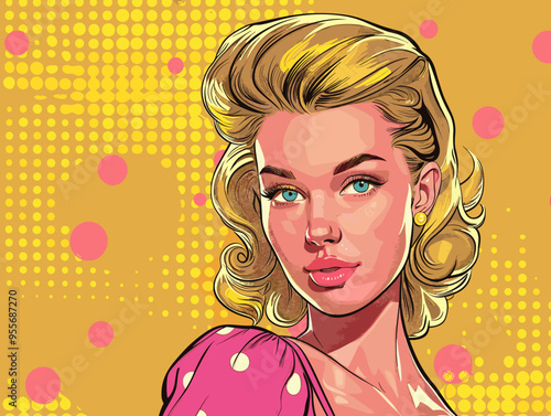 Векторная иллюстрация красивой молодой женщины с воздушным шаром для любовной речи. Сексуальный портрет девушки в стиле ретро-поп-арт в стиле комиксов.