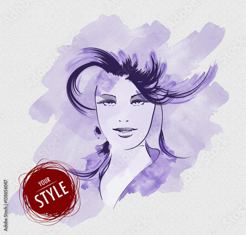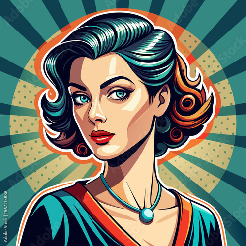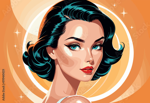 Векторная иллюстрация красивой женщины с длинными развевающимися волосами и речевым пузырем. Сексуальная девушка в стиле ретро-поп-арт в стиле комиксов.
