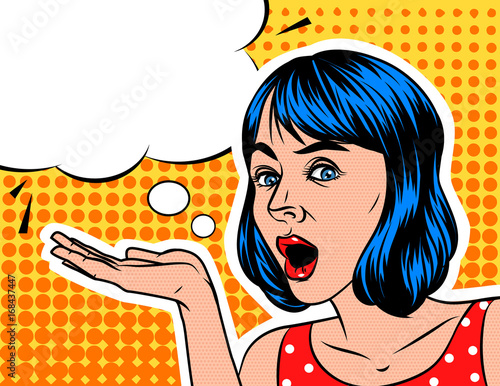 Векторное поп-искусство красивая девушка с будильником. Паника, удивление или пробуждение поздно утром девушки, речевой пузырь, стиль комиксов.