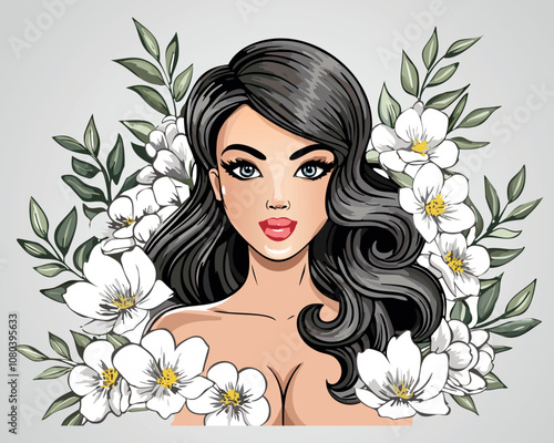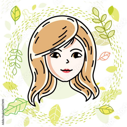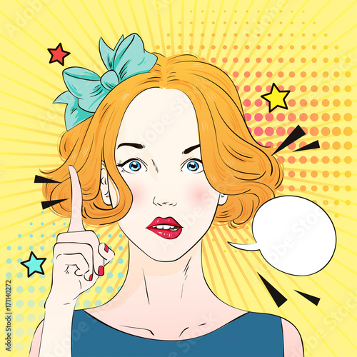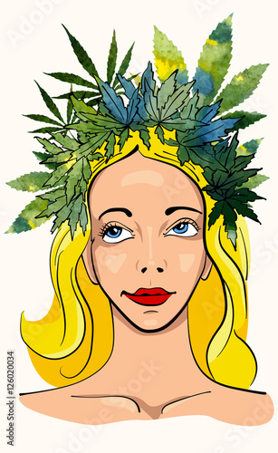 Векторная иллюстрация красивой женщины, держащей лист зеленого чая, речевой пузырь. Концепция рекламы средств по уходу за кожей в стиле комиксов ретро-поп-арта.