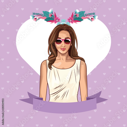 Векторная красивая молодая женщина, держащая белую пустую ленту, баннер в стиле комиксов ретро-поп-арта.