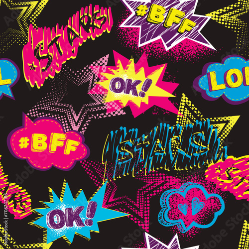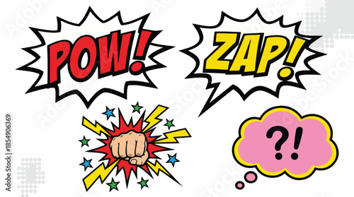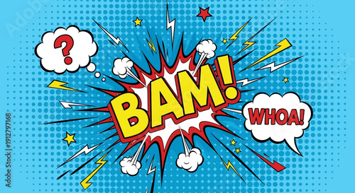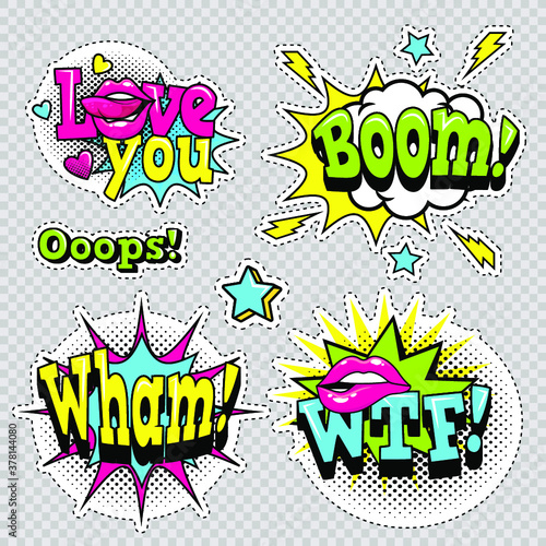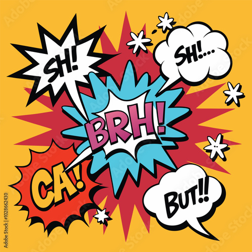 Векторная винтажная поп-арт-комическая речь и пузырь взрыва, набор модных фраз и выражений: Бах, Бах, Бам, Бам.