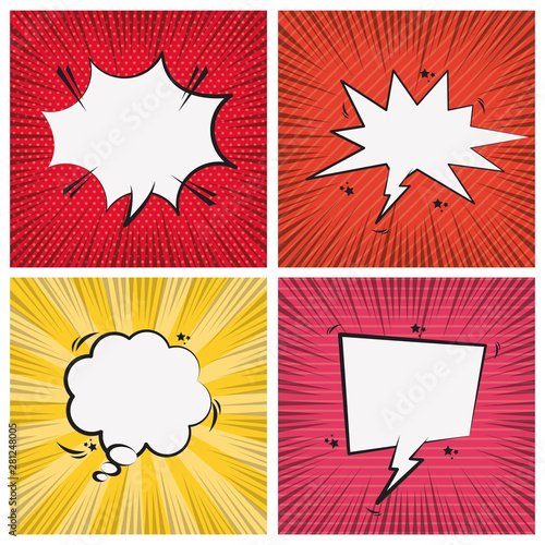 Векторные винтажные поп-арт-комические речевые пузыри, формы и знаки