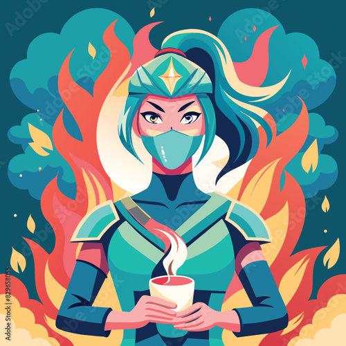 Векторная иллюстрация красивой девушки с чашкой горячего кофе. Сексуальная девушка в стиле ретро-поп-арт в стиле комиксов.