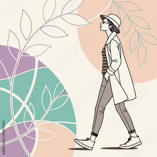 Векторная иллюстрация мальчика, просыпающегося утром с вытянутыми руками. Дизайн счастливого утра в стиле комиксов ретро-поп-арта.