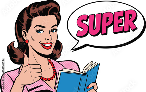 Векторная иллюстрация женщины, разговаривающей по телефону и пьющей кофе в офисе в стиле комиксов ретро-поп-арта. Добрый утренний речевой пузырь.