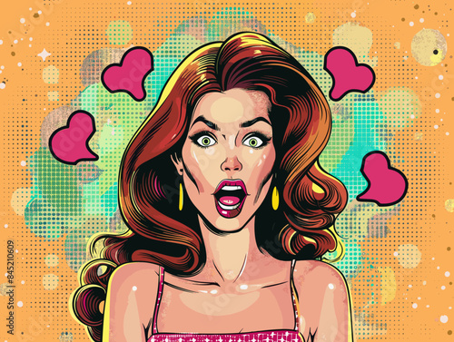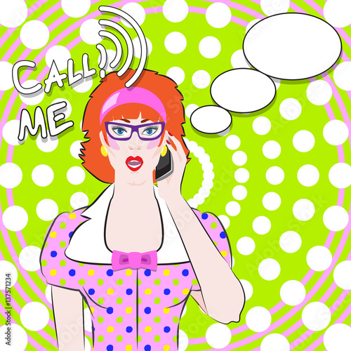 Векторная иллюстрация красивой молодой женщины, мечтающей быть любимой, подумал пузырь. Комический стиль ретро-поп-арта.