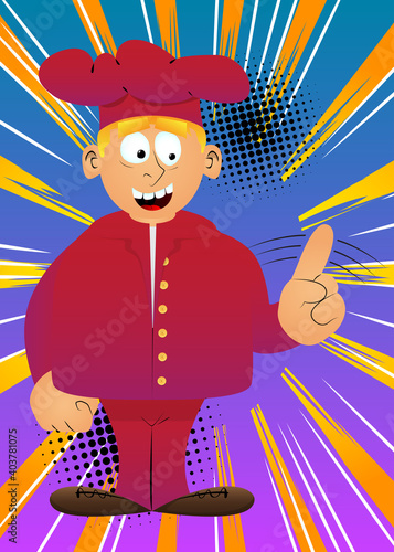 Векторная иллюстрация фокусника, выполняющего трюк. Магическое шоу иллюзий или цирковое шоу - элемент дизайна в стиле комиксов ретро-поп-арта.