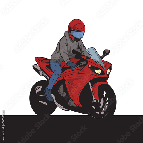 Векторная иллюстрация молодого человека, едущего на квадроцикле. Байкер и квадроцикл на вездеходе в стиле ретро-поп-арт в стиле комиксов.