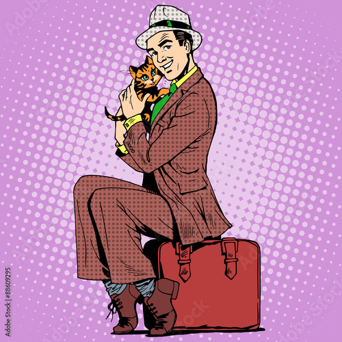 Векторная иллюстрация грустного человека, говорящего по телефону, речевой пузырь. Расстроенный мужчина в стиле комиксов ретро-поп-арта.